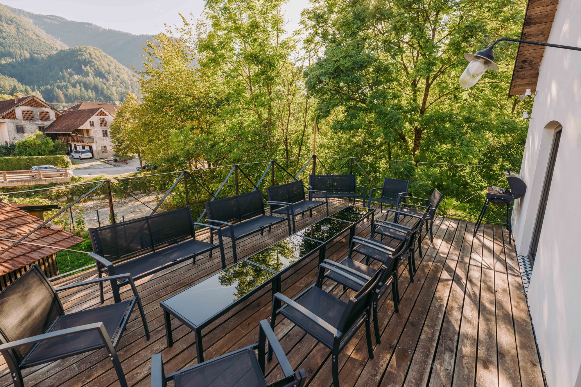 Prostorni apartma je dobro opremljen za skupino do 15 gostov, za vse, ki iščejo prostor za oddih skupaj s sorodniki, prijatelji ali udeleženci raznih, tudi »brainstorming« druženj in tečajev. V nadstropju je pokriti vhodni balkon – gank, sledi pa velik prostor s kuhinjo in jedilnico na eni strani ter prostorom za druženje (ob kaminu) na drugi. Tu boste našli tudi HiFi, WIFI in TV, pa tudi projektor za svoje kino-predstave. Kopalnici imata predprostor z dodatnima umivalnikoma. Apartma ima tudi dostop do velike opremljene sončne terase. Iz bivalnega prostora vas spiralne stopnice popeljejo na galerijo, kamor se lahko umaknete, če potrebujete nekaj miru ali pa želite prelistati katero od knjig. Na drugi strani je spalnica s 13 ležišči in pregradnimi stenami in policami. V dnevnem prostoru sta še dodatni dve ležišči. Brezplačna parkirišča so v neposredni bližini. The spacious apartment is well-equipped for a group of 15 guests, for everyone looking for a space to relax together with relatives, friends or participants of various, including "brainstorming" gatherings and courses. The first floor has a covered entrance balcony – porch, followed by a large space with a kitchen and dining room on one side and a space for socializing (by the fireplace) on the other. Here you will also find HiFi, WIFI and TV, as well as a projector for your cinema shows. Two bathrooms have a shared hallway with additional sinks. The apartment also has access to a large furnished sun terrace. From the living area, a spiral staircase leads you to the gallery, where you can retreat if you need some peace or want to flip through one of the books. On the other side is a bedroom with 13 beds and partition walls and shelves. There are two additional beds in the living room. Free parking spaces are nearby.